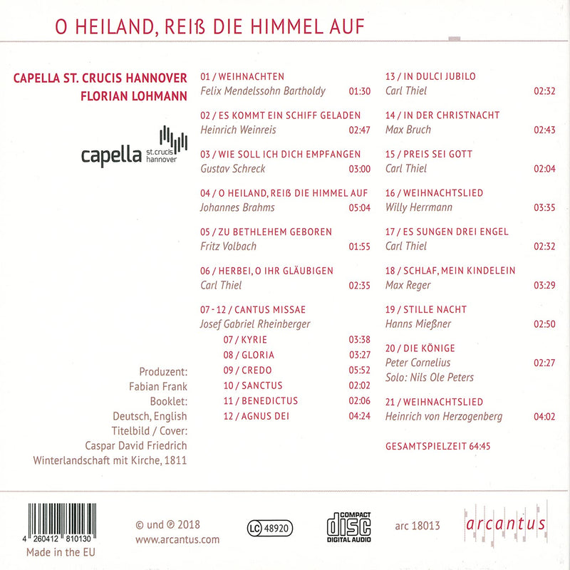 arcantus MusikproduktionO Heiland, Reiß die Himmel auf – Chorwerke der Romantik zu Advent und Weihnachten / Lohmann, Capella St. Crucis Hannover