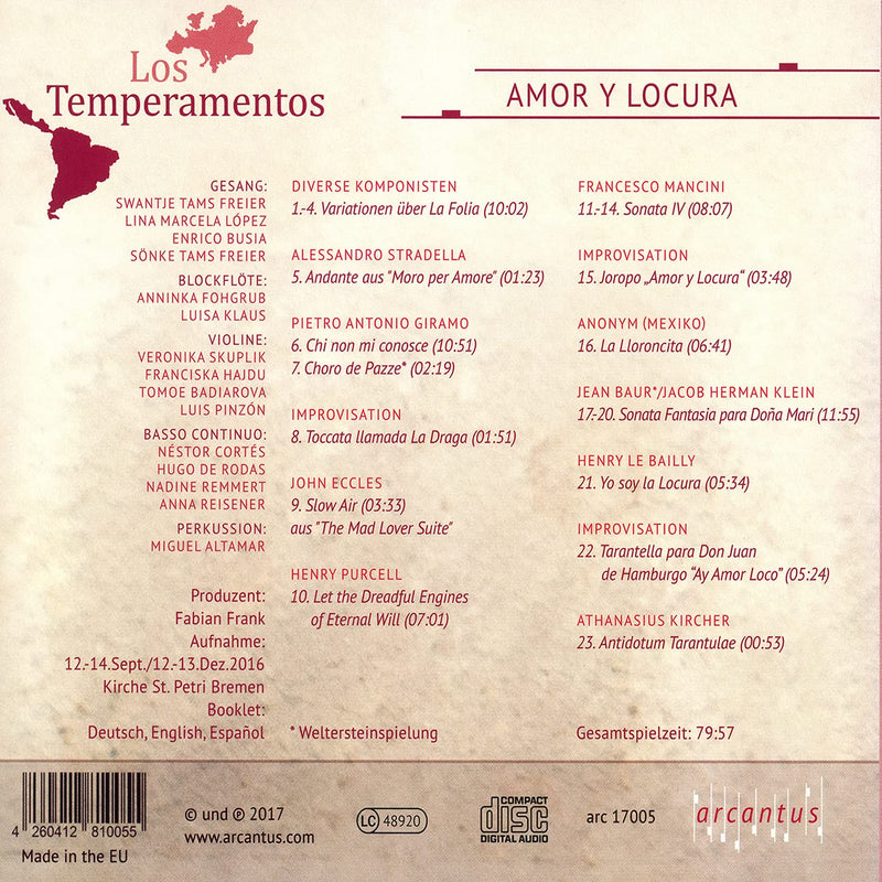 arcantus MusikproduktionKlein, Le Bailly, Stradella & Kircher: Amor y Locura / Los Temperamentos