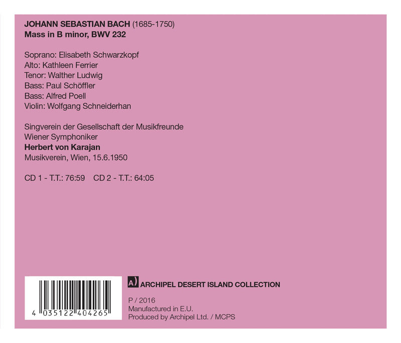 Johann Sebastian Bach: Mass In B Minor, Bwv 232 (Wien, 1950)