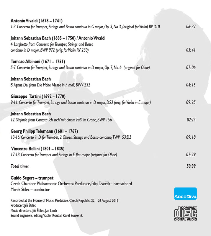 This new release features recordings of concertante pieces by Baroque masters for trumpet and strings, including Vivaldi, Tartini, Albinoni, Bellini, Bach, and...