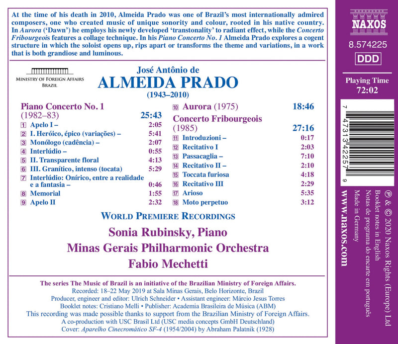 On SaleNaxosPrado: Piano Concertos No. 1 & "Fribourgeois" / Rubinsky, Minas Gerais Philharmonic