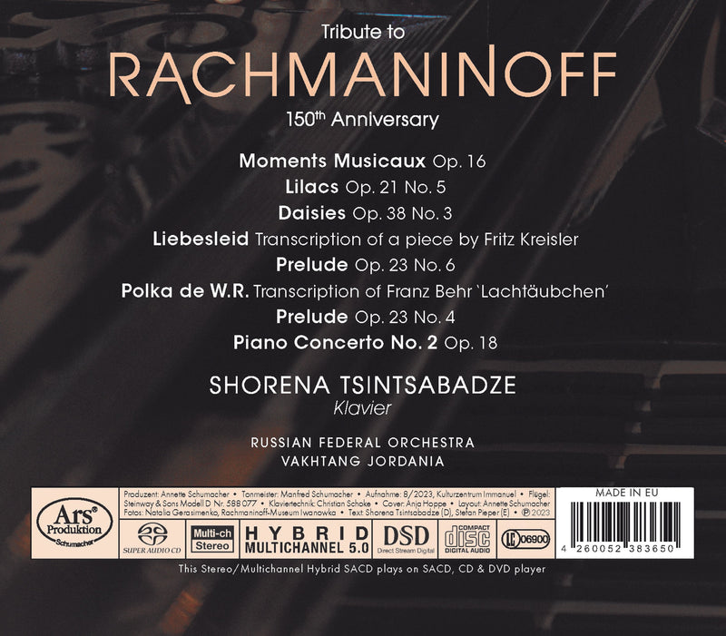 Ars ProduktionTribute to RachmaninoffIt is with pride that I present a special edition dedicated to the famous pianist, composer and conductor Sergei Vasilyevich Rachmaninoff, whose...