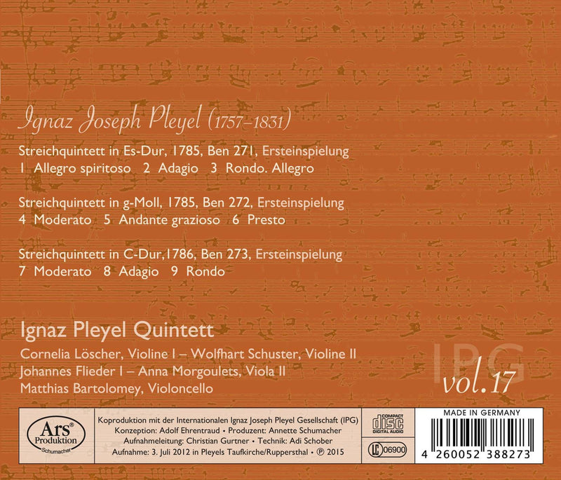 Ars ProduktionIgnaz Joseph Pleyel, Vol. 17: Quintette, Ben 271-273