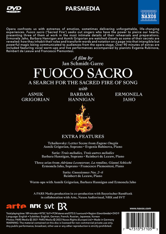 On SaleNaxos AudioVisualSatie, Cilea, Puccini, Tchaikovsky: Fuoco Sacro [Documentary] / Grigorian, Hannigan, Jaho