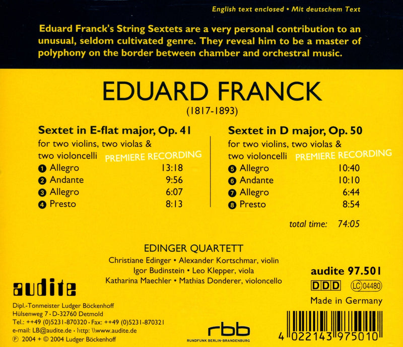 Audite MusikproduktionAUDITE 2012 CATALOG + CD2012 complete audite catalog in deluxe digipacIncludes full-length CD:Ludwig van Beethoven Symphonies Nos 4 & 5Rafael KubelikSymphonie-Orchester des Bayerischen Rundfunks
