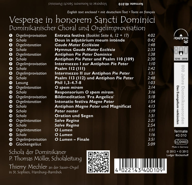 Audite MusikproduktionVESPERAE IN HONOREM SANCTI DOMINICI