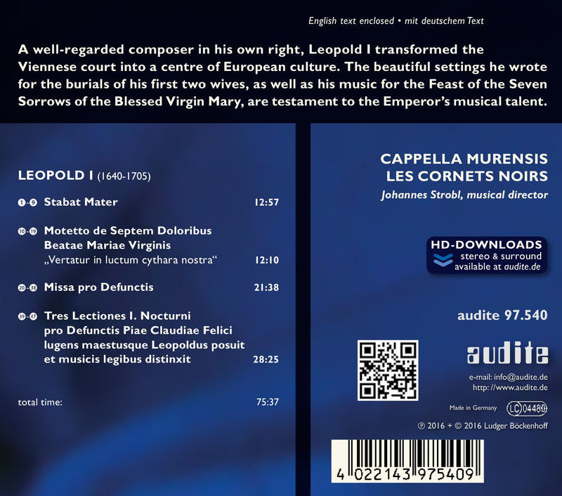 Audite MusikproduktionParadisi Gloria: Sacred Music by Emperor Leopold I / Cappella Murensis, Les Cornets Moirs