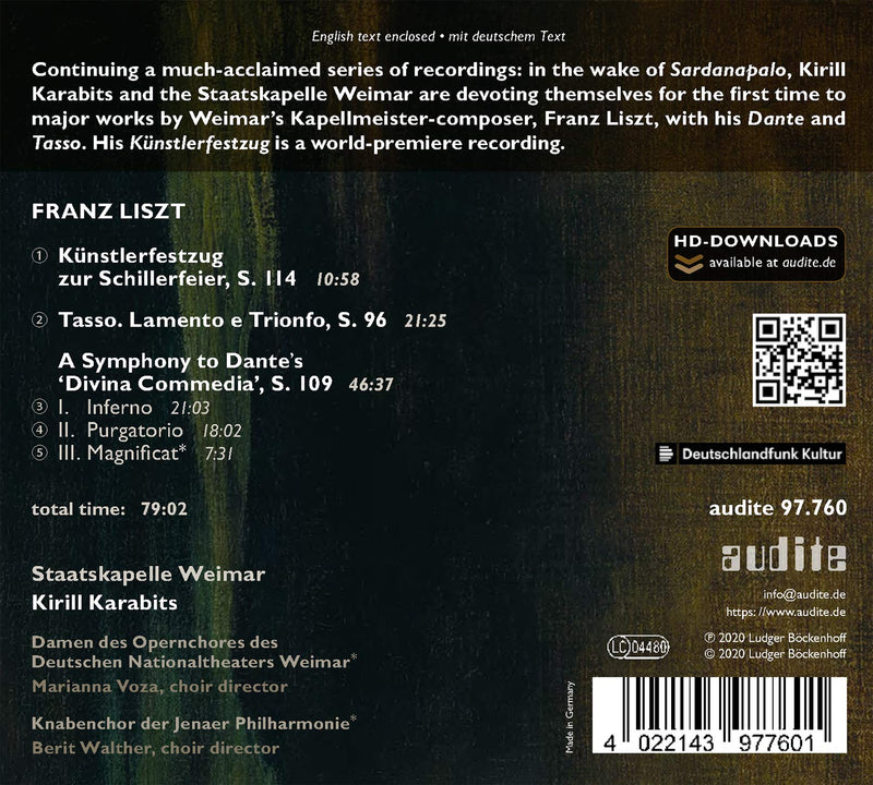 Audite MusikproduktionLiszt: Dante Symphony - Tasso: lamento e trionfo - Künstlerf
