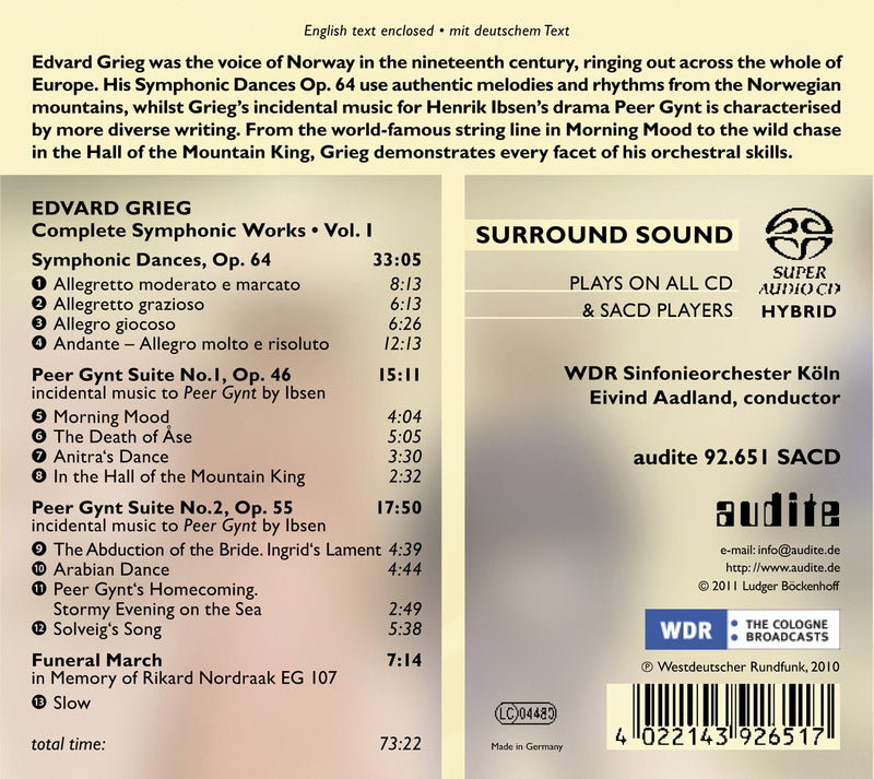 Audite MusikproduktionGrieg: Complete Symphonic Works, Vol. 5