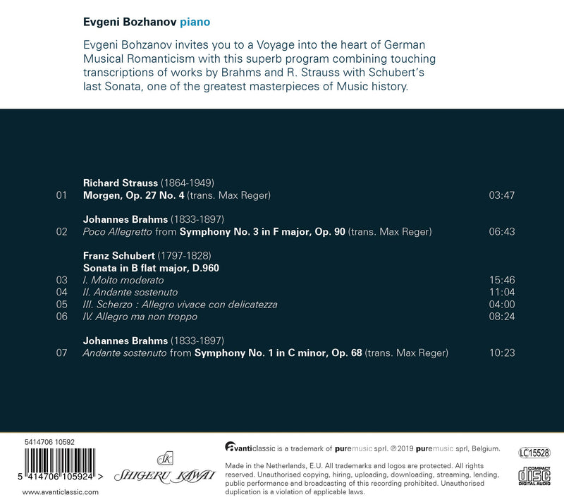 Evgeni Bohzanov invites you to a Voyage deep into the heart of German Musical Romanticism with this superb program combining moving transcriptions...