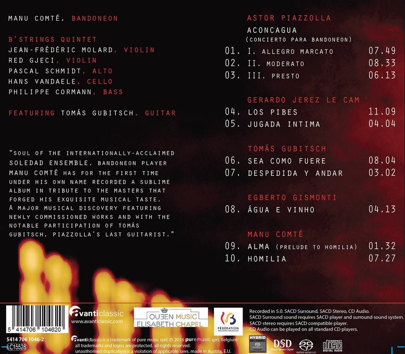" A major musical discovery featuring newly commissioned works and with the notable participation of Tomás Gubitsch, Piazzolla's last guitarist." Manu Comté...