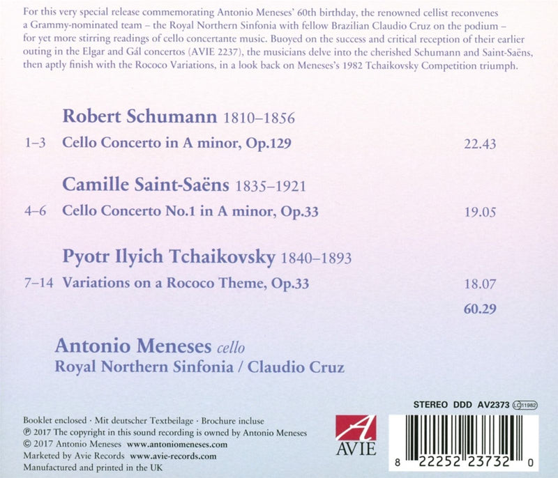 On SaleAvie RecordsSchumann, Saint-Saëns, & Tchaikovsky: Works for Cello and Orchestra / Meneses, RNS