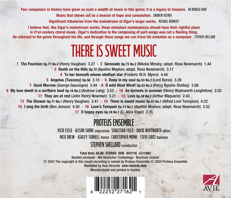 Avie RecordsThere is Sweet Music - Elgar: Part Songs / Shellard, Proteus EnsembleThere Is Sweet Music is the idyllic title of the first AVIE release by the eight-voice Proteus Ensemble and their conductor Stephen...