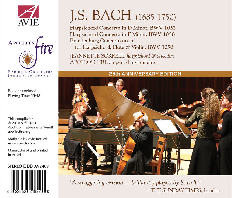 Avie RecordsBach: Harpsichord Concertos (25th Anniversary Edition) / Sorrell, Apollo's FireJeannette Sorrell, the celebrated founder-director of Cleveland-based Baroque orchestra Apollo's Fire, first fell in love with the harpsichord upon hearing three masterpieces...
