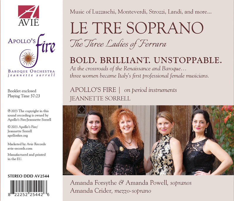 Avie RecordsLe Tre SopranoTheir names were Laura, Livia, and Anna. Together, they were known in the late 1500's as the Tre Donne di Ferrara -...