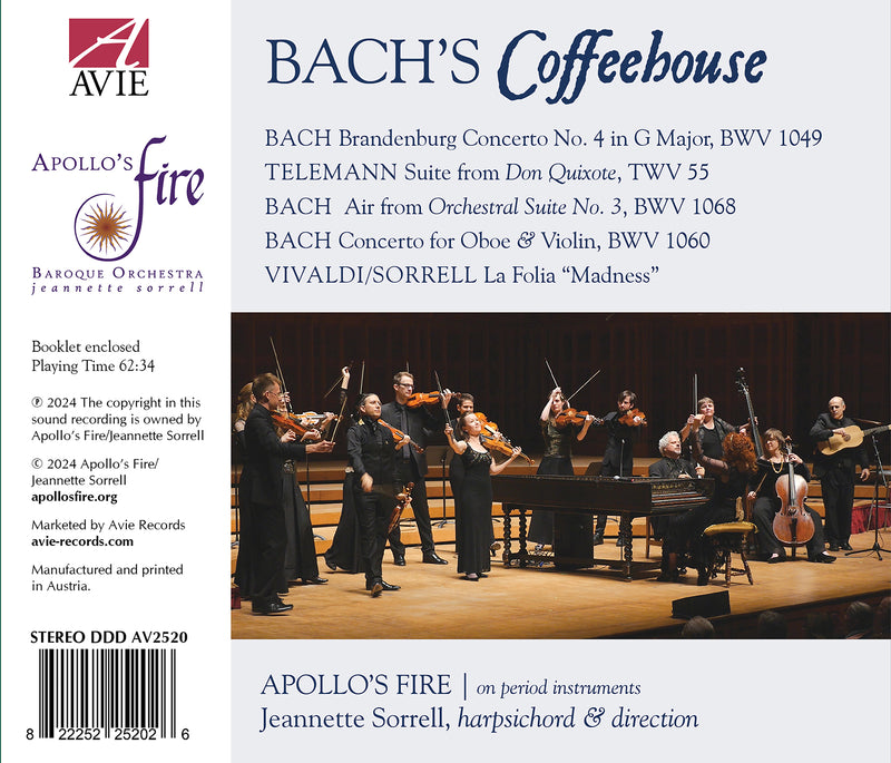 Avie RecordsBach's Coffeehouse / Sorrell, Apollo's FireBach's Coffeehouse brings together a selection of Apollo's Fire recordings - old and new alike - featuring repertoire that is believed to...