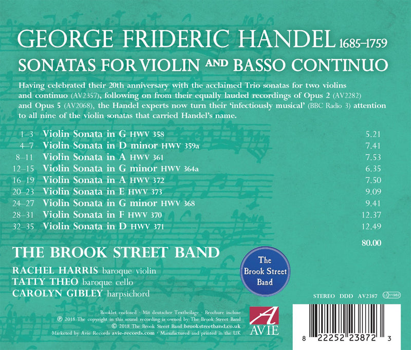 Avie RecordsHandel: Sonatas for Violin & Basso Continuo / Brook Street Band