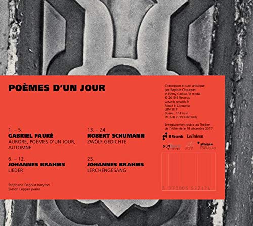 B RecordsPoemes d'un jour / Degout, LepperShort just as love, life, poetry, and a winter concert given at the Théâtre de l’Athénée, this new B Records album proposes...