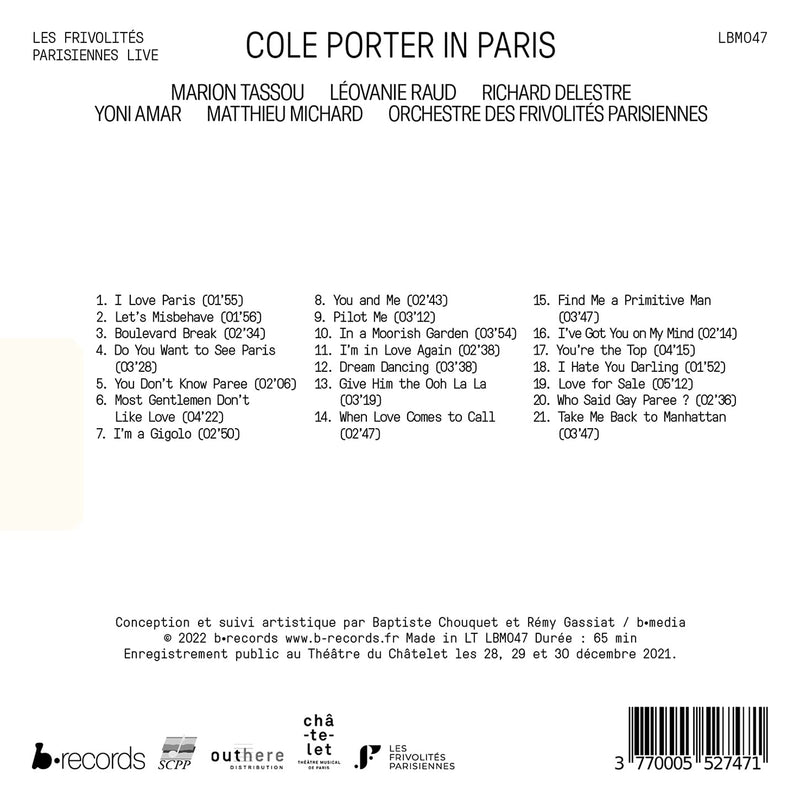 B RecordsCole Porter in Paris (Live at Les frivolites parisiennes)Ten years after their creation, Les Frivolités Parisiennes present a dizzyingly colorful and spirited musical show based on the Parisian life of...