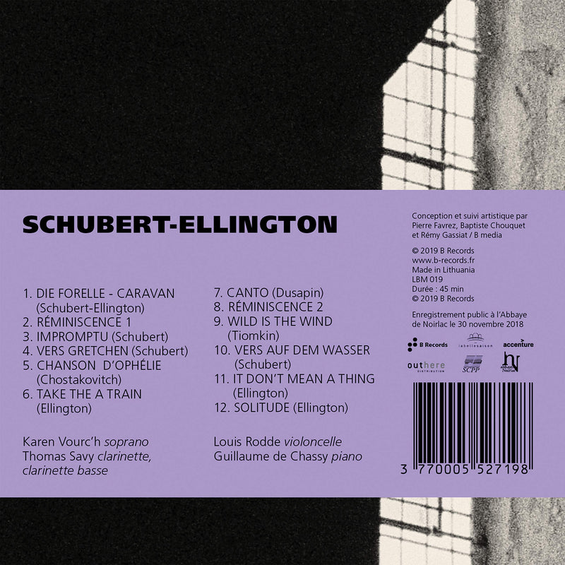 B RecordsSchubert-Ellington / Savy, Vourc'h, Rodde, ChassyThis autumn, intermingled melodies could be heard under the round arches of Noirlac Abbey, amongst which the strains of both Schubert’s “Trout”...