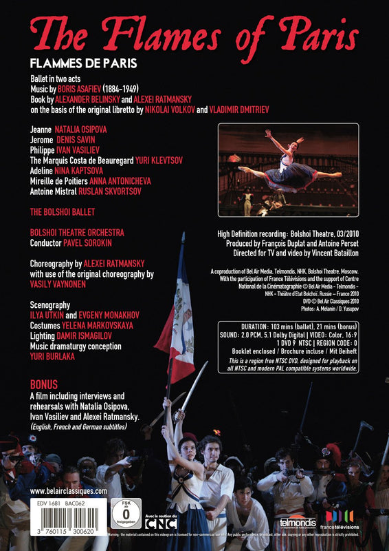 BelAir ClassiquesThe Flames Of Paris / Osipova, Vasiliev, Bolshoi BalletAsafyev: Les Flammes De Paris In Memoriam of the Great French Revolution. World Premiere Recording at the Bolshoi Ballet in DVD. The...