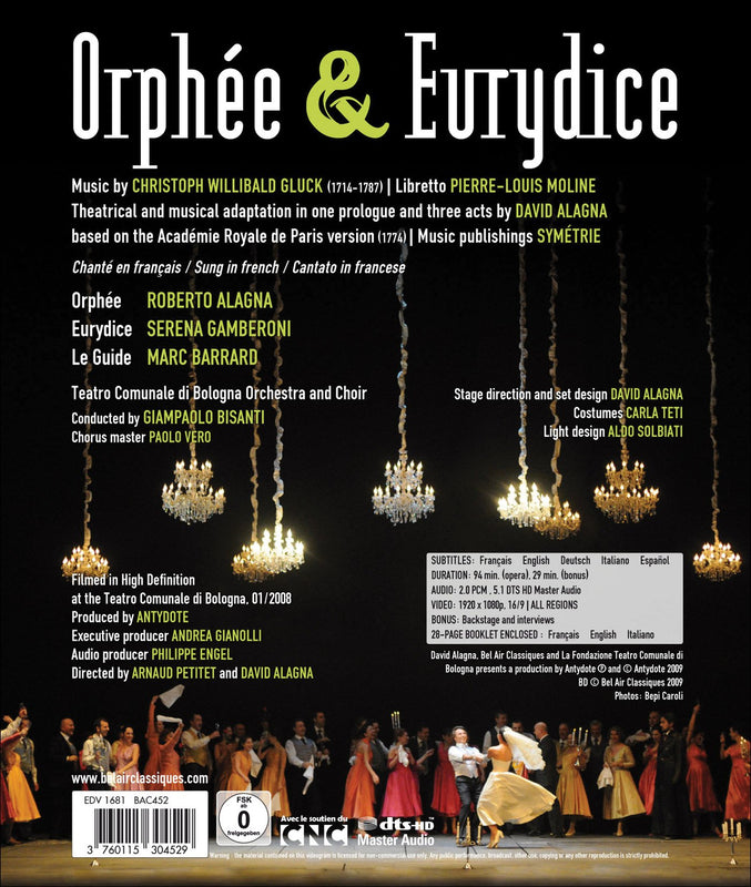 BelAir ClassiquesORPHÉE ET EURYDICE (BLURAY)Roberto Alagna, Serena Gamberoni, and Marc Barrard star in this 2008 Bologna performance of the Gluck opera filmed in HD and conducted...