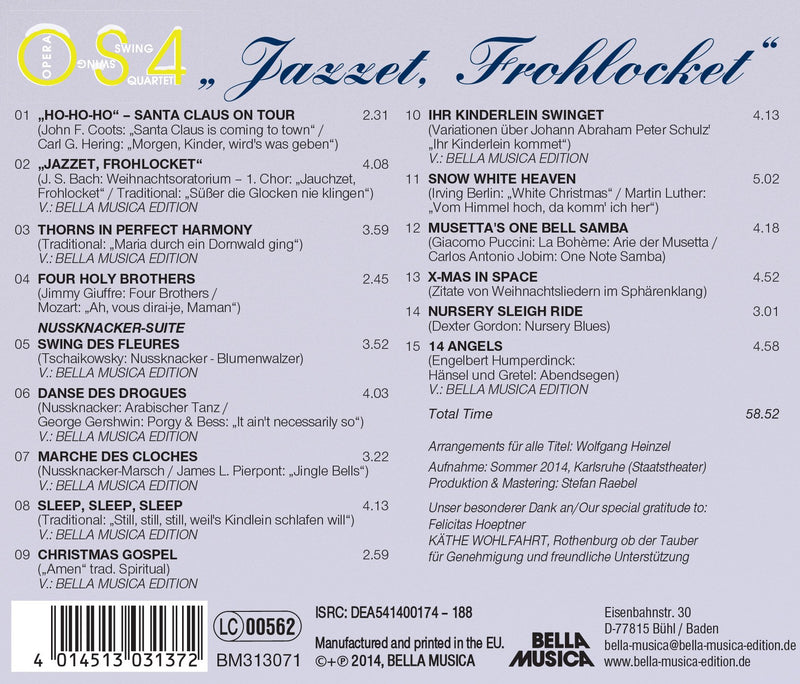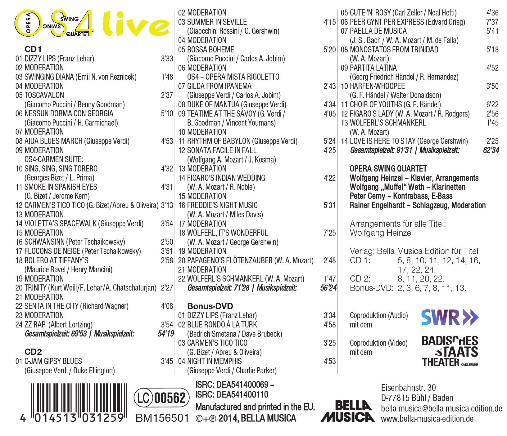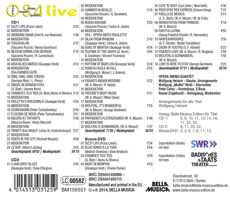 2014 marks the 20th anniversary of the Opera Swing Quartet (OS4); this 2CD/1DVD Bella Musica release celebrates this auspicious occasion in the...