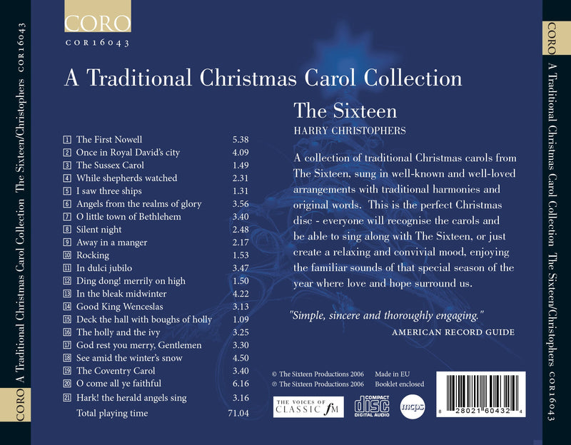 On SaleCoroA Traditional Christmas Carol Collection / The SixteenA collection of well-loved traditional Christmas Carols, perfect for creating a warm seasonal atmosphere and to sing along with. Simple, sincere and...