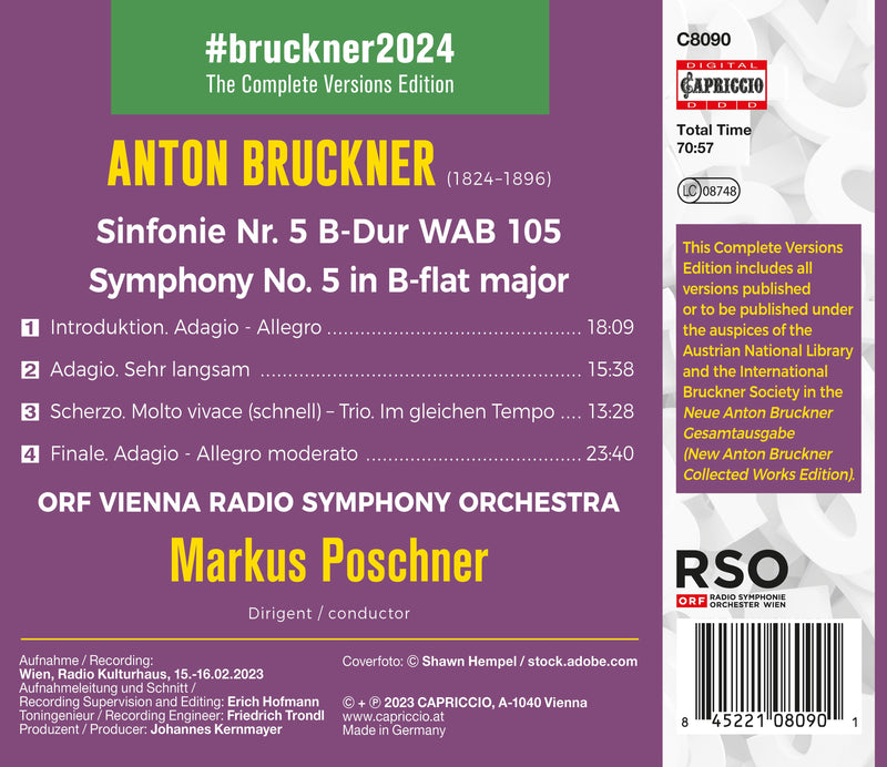 On SaleCapriccioBruckner: Symphony No. 5 / Poschner, ORF Vienna Radio SymphonyAmong Bruckner’s Symphonies, the Fifth is his contrapuntal masterpiece; the grandest until the Eighth. The tour-de-force of a finale gives us an...