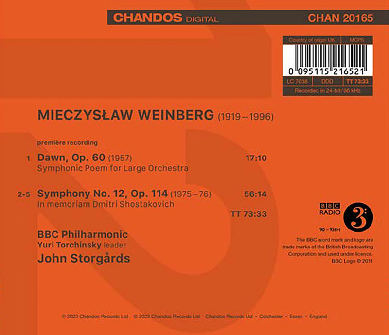 ChandosWeinberg: Dawn; Symphony No. 12 / Storgårds, BBC PhilharmonicEvery five years the Soviet Union celebrated the anniversary of the October 1917 Revolution with large-scale public events, to which the country’s...