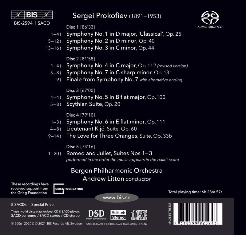 BISProkofiev: The Symphonies / Litton, Bergen PhilharmonicCelebrating the 130th anniversary of Sergei Prokofiev (1891 - 1953), the present box set brings together recordings of his seven symphonies made...