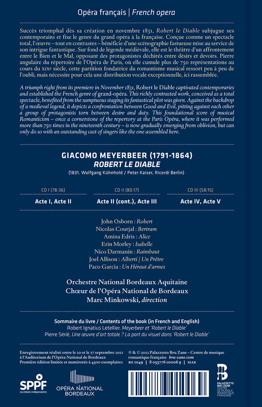 On SaleBru ZaneMeyerbeer: Robert le Diable / Minkowski, Bordeaux Aquitaine National Orchestra