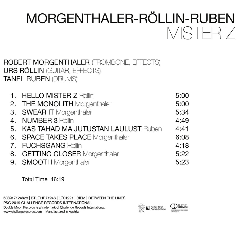 Morgenthaler / Rollin present their instruments at their musical and physical limits in an enthralling way. Interestingly enough, although both the guitar and the trombone are tenor instruments, you dont miss either bass or soprano voices. The highly sensitive interaction between the instruments produces a sound world, which in this intensiveness is seldom heard. Sometimes the sounds are so radically changed by electronic effects and so expertly interwoven that its almost impossible to make out the original sound that was produced. It is however impossible to overlook the playing backgrounds and musical cultures that the two flexible musicians, which have played together for more than 10 years in the quartet unart 0.4 have in their blood. Sometimes a traditional song appears or it will be completely improvised. This effortless instant composing and the element of surprise are evident features of their music. It leads to an intelligent and heartfelt music, that touches the soul with a lot of charm, putting the listener under its spell with its groovy and spontaneous passages.