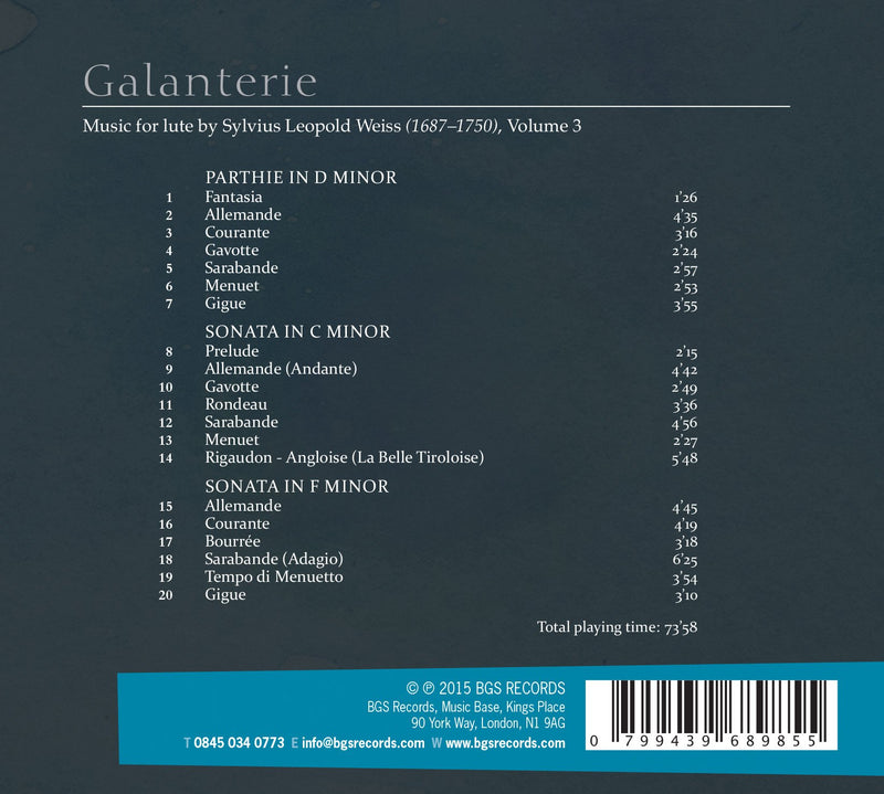 BGS RecordsGalanterie: Music for lute by Sylvius Leopold Weiss, Vol. 3