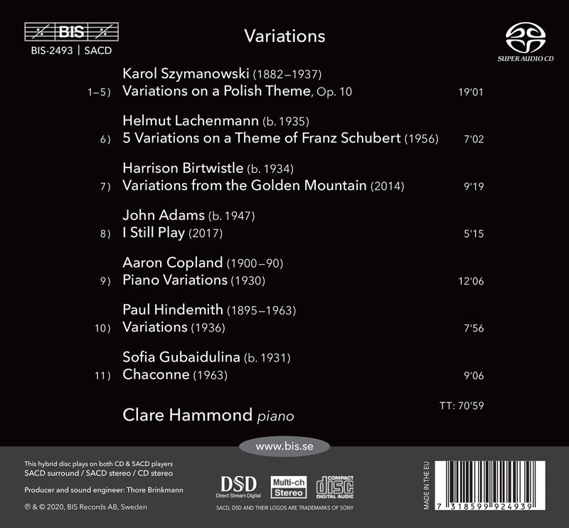 For her fifth release on BIS Clare Hammond has constructed an adventurous programme of twentieth and twenty-first-century variations for piano. From the...