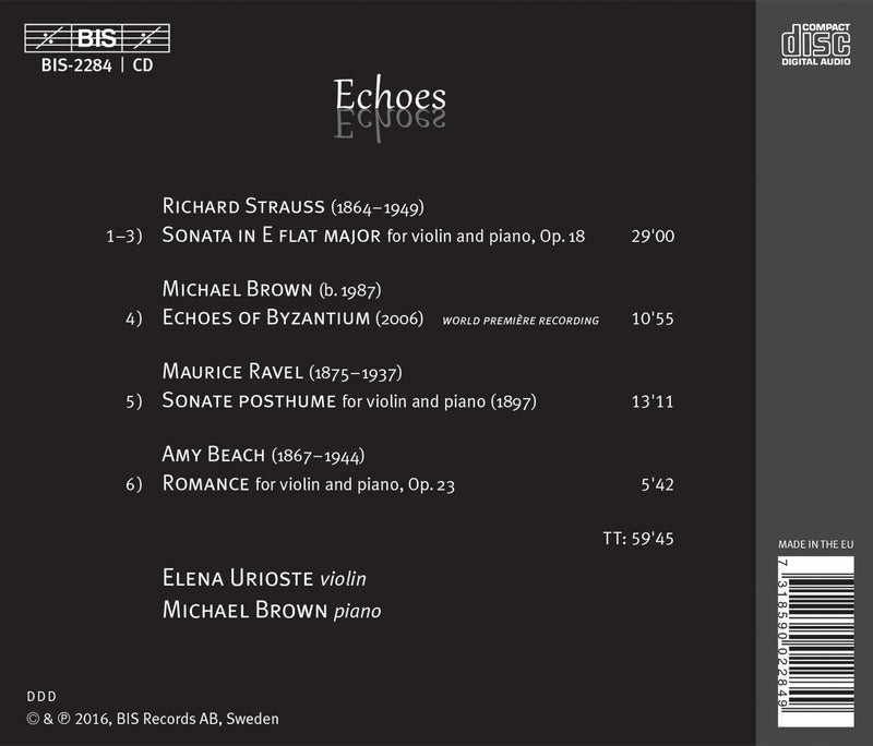 Elena Urioste and Michael Brown formed a recital duo in 2009 and have performed together extensively ever since. For their first recording...