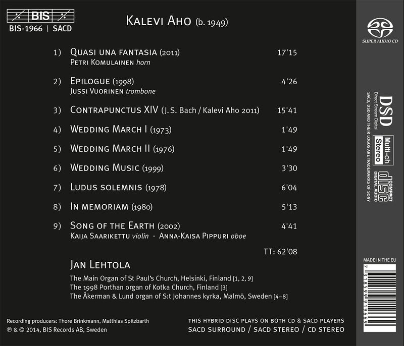 A companion to Jan Lehtola’s recording of Kalevi Aho’s (b. 1949) monumental organ symphony ‘Alles Vergängliche’, this present disc includes five smaller...