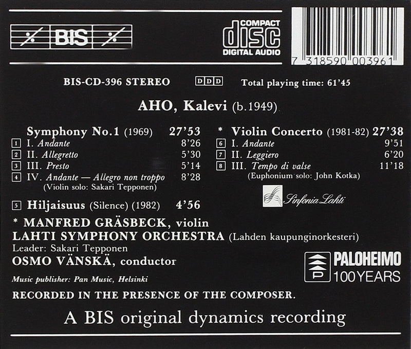 Given Sibelius’s reputation as one of the great symphonists of the last century, contemporary Finnish composers may be forgiven for feeling a little overshadowed. Fortunately for the young Aho, Rautavaara’s advice and support proved decisive in shaping this symphony, which began life as a string quartet. The work is in four movements, the mysterious opening and ascending brass figures of the Andante strongly reminiscent of Shostakovich. Indeed, this is confirmed by the noted music publisher Fennica Gehrman, in a short article on the Finnish Musical Information Centre website.