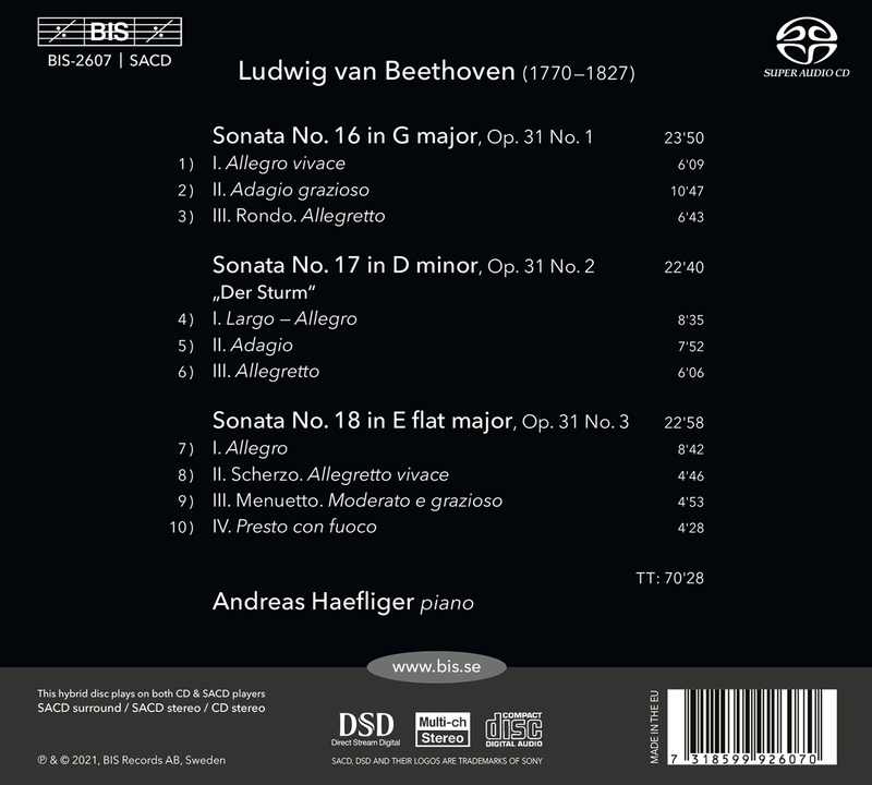 On SaleBISBeethoven: Piano Sonatas, Op. 31 / Haefliger