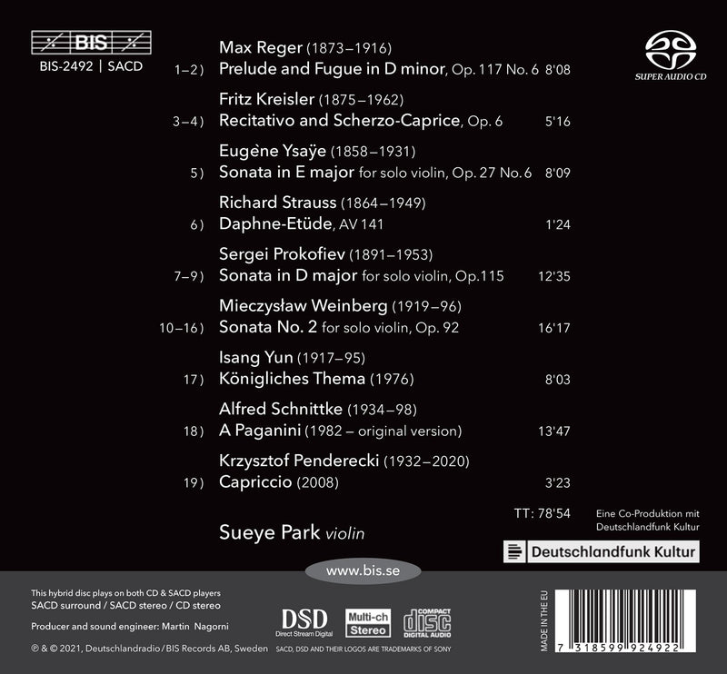 Shortlisted for the Gramophone Awards! Exploring the repertoire for solo violin, the young Korean violinist Sueye Park has chosen works spanning exactly...