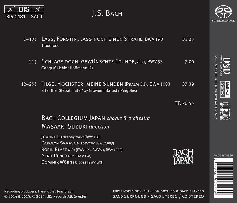BISBach: Secular Cantatas, Vol. 6 - Trauerode / Suzuki, Bach Collegium Japan
