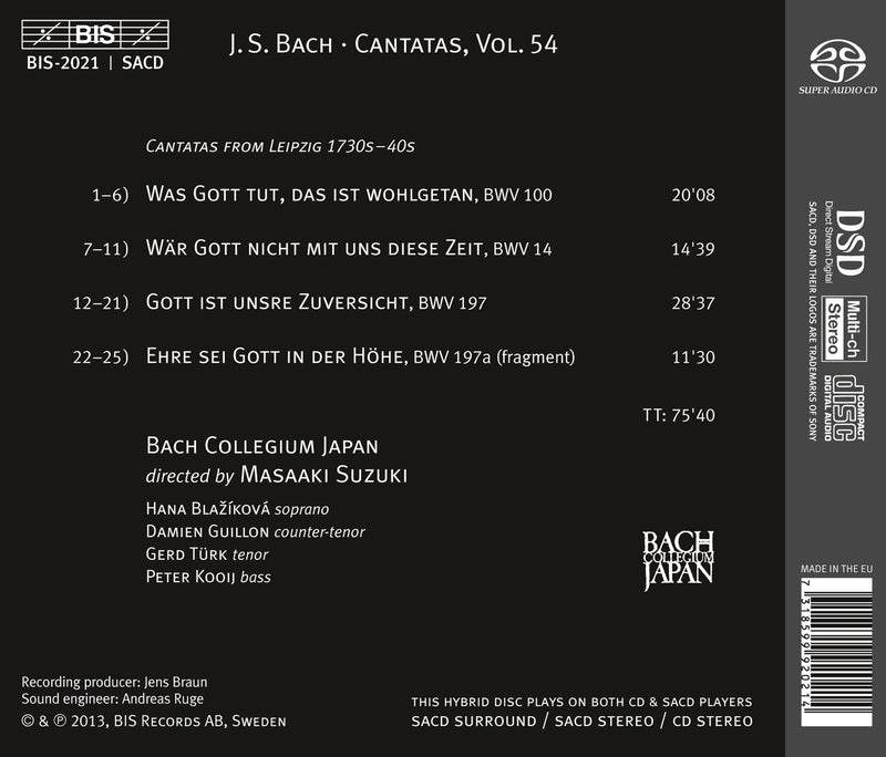 BACH Cantatas Nos. 1001; 142; No. 1973; No. 197a4 • Masaaki Suzuki, cond; Bach Collegium Japan; 1-3Hana Blažiková (sop); 1,3,4Damien Guillon (ct);...