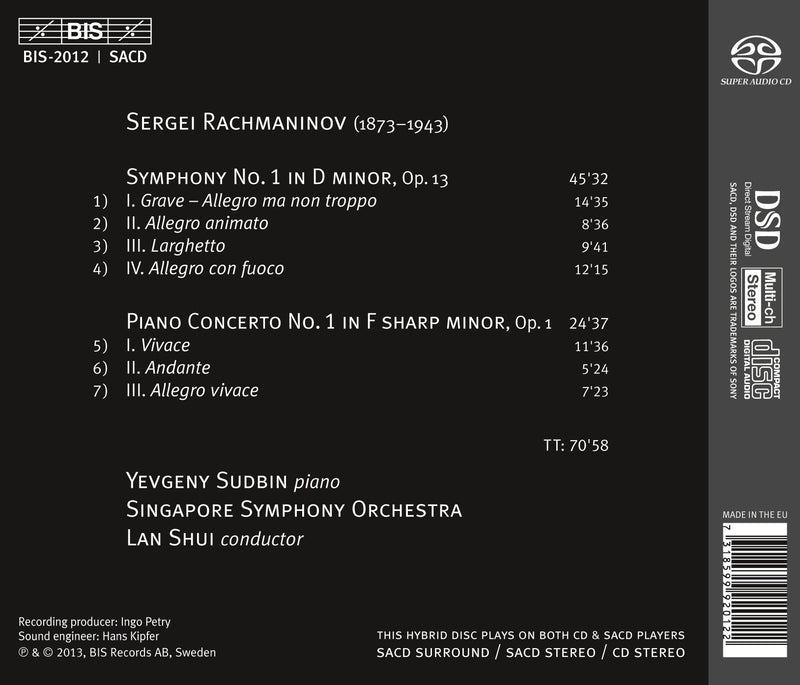 BISRachmaninov: Piano Concerto, Symphony No 1 / Sudbin, Shui