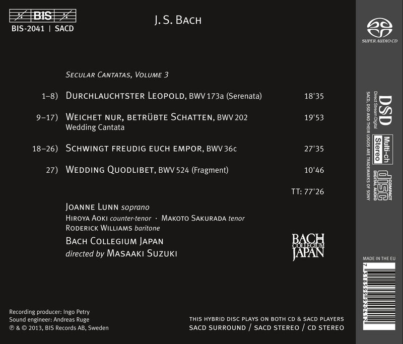 BISBach: Secular Cantatas Vol 3 / Suzuki, Bach Collegium Japan