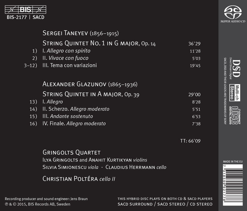 BISTaneyev & Glazunov: String Quintets