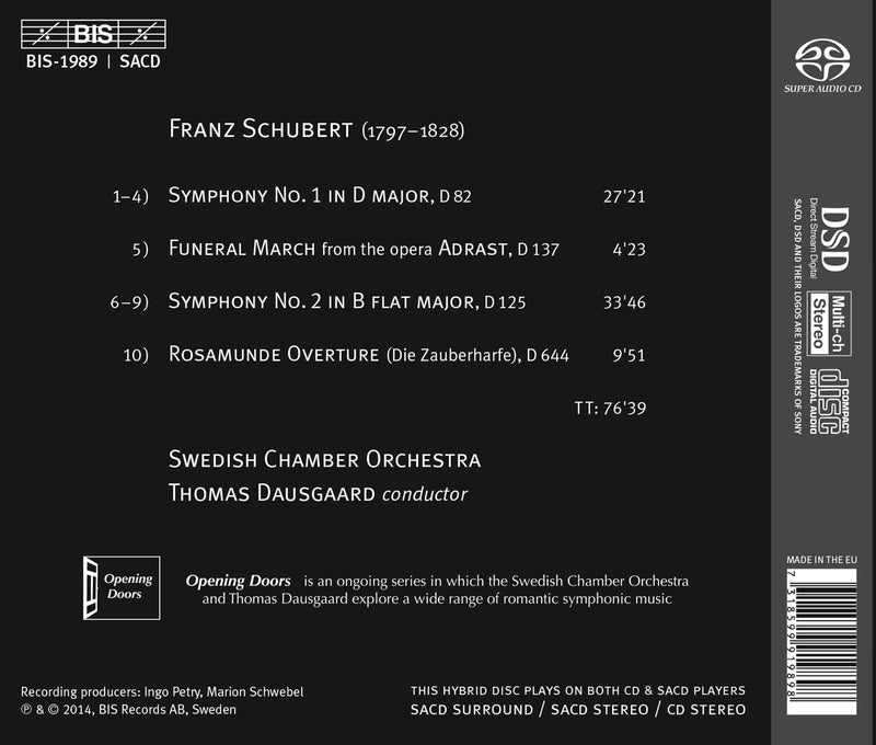 On the final disc of a complete cycle, Thomas Dausgaard and the Swedish Chamber Orchestra offer Franz Schubert's first two symphonies as...