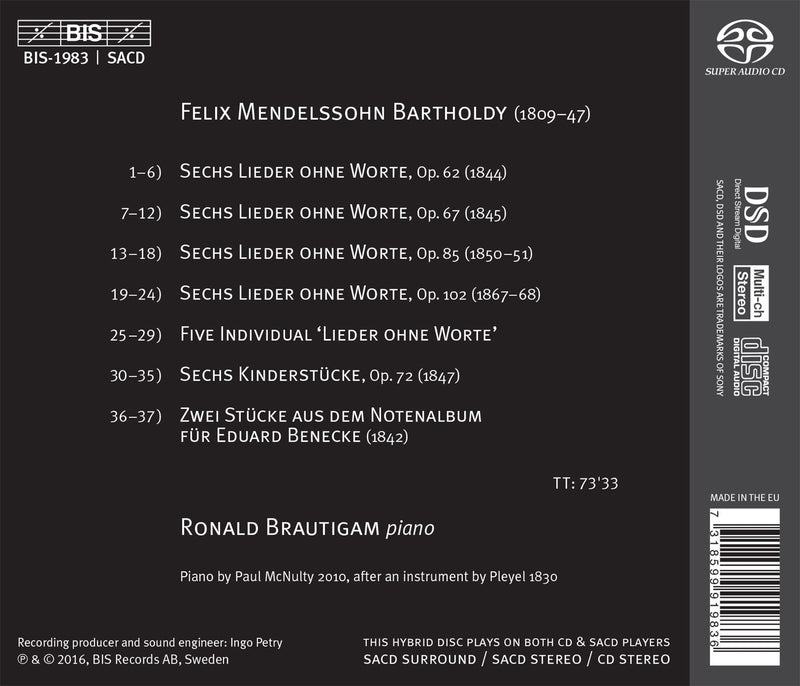 BISMendelssohn: Lieder ohne Worte, Books 5-8 / Brautigam