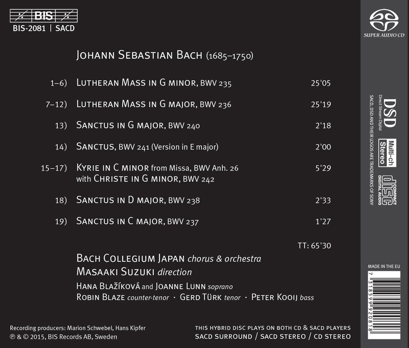 BISBach: Lutheran Masses, Vol. 1 / Suzuki, Bach Collegium Japan
