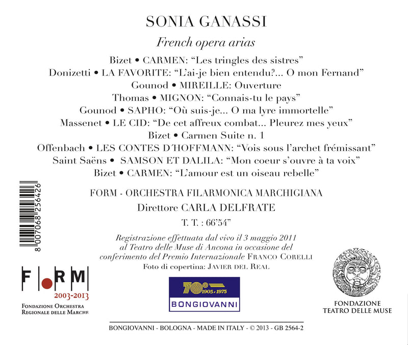 � A 2011 concert performance by Italian mezzosoprano Sonia Ganassi singing French arias of Bizet, Gounod, Massenet, and others. � Conductor Carla...