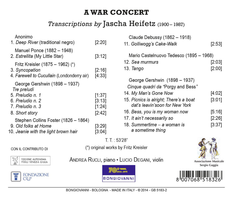 On SaleBongiovanniA War Concert: Transcriptions by Jascha Heifetz